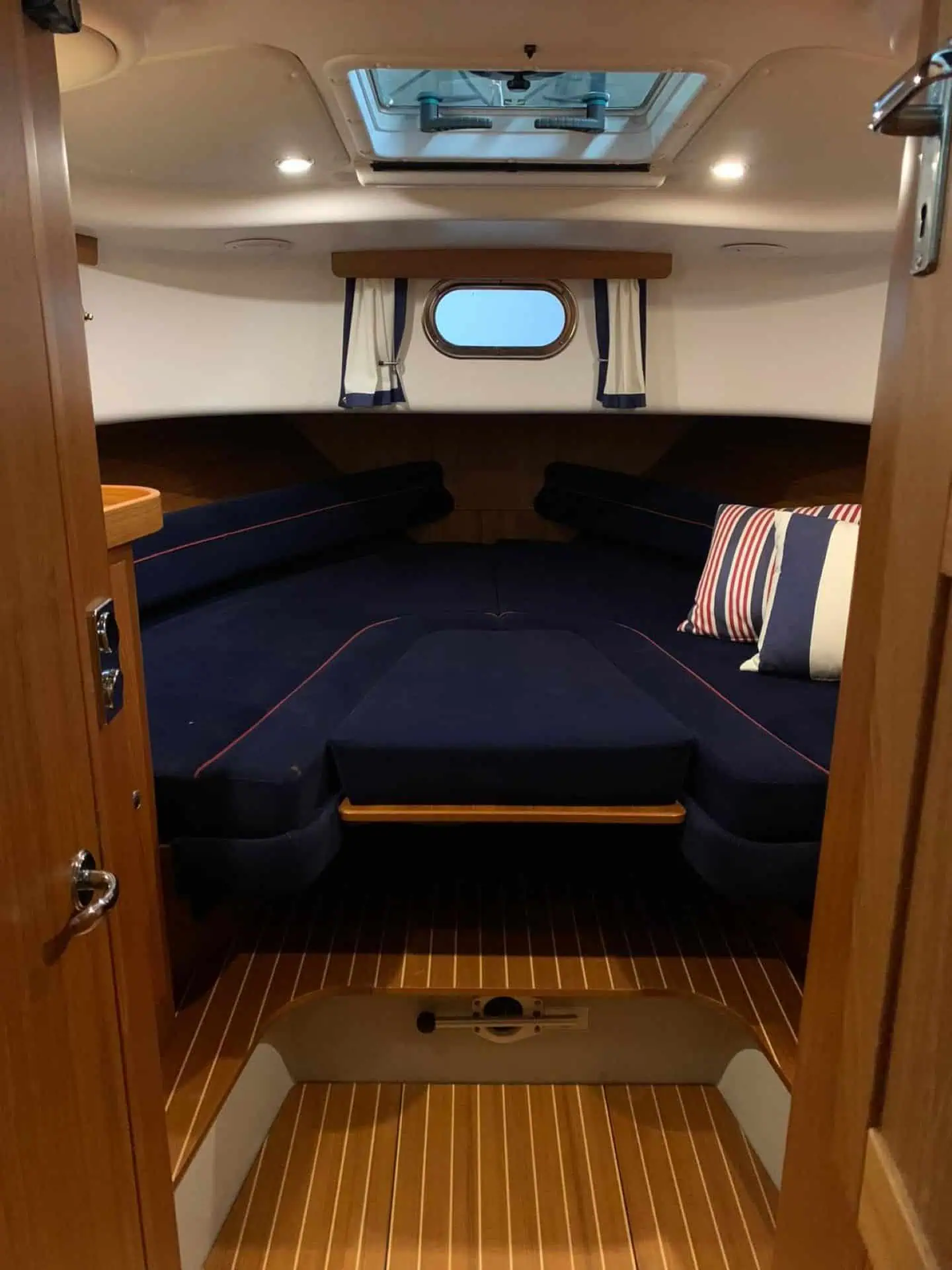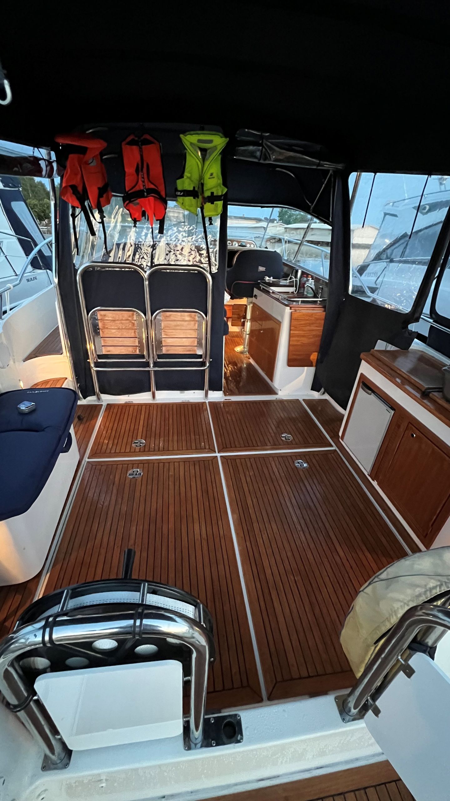 Tilavat ja hyvin suunnitellut sisätilat tarjoavat mukavat puitteet pidemmillekin reissuille. Veneessä on viihtyisä salonki, toimiva keittiö sekä useampi makuupaikka, joten yöpyminen sujuu vaivattomasti koko perheeltä tai ystäväporukalta. Laadukkaat materiaalit ja viimeistelty ilme tekevät oleskelusta miellyttävää.