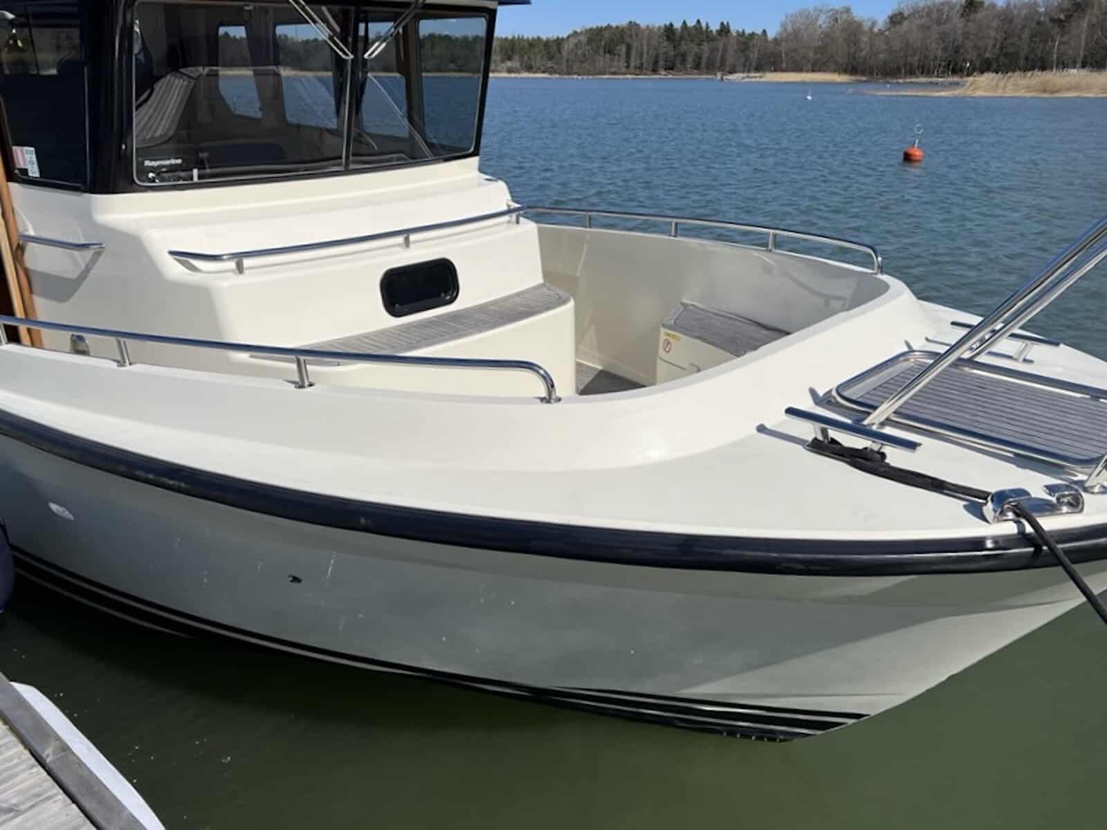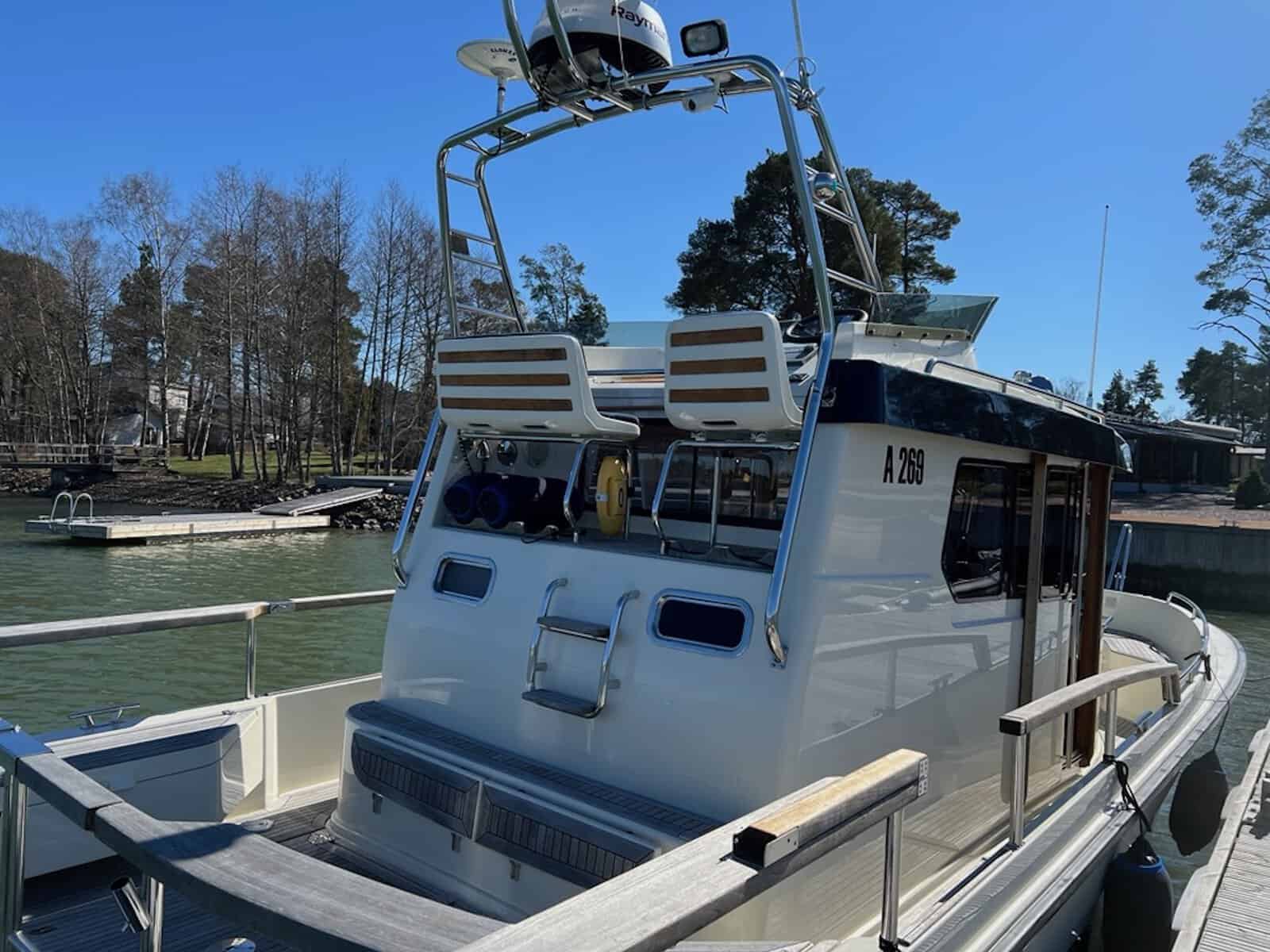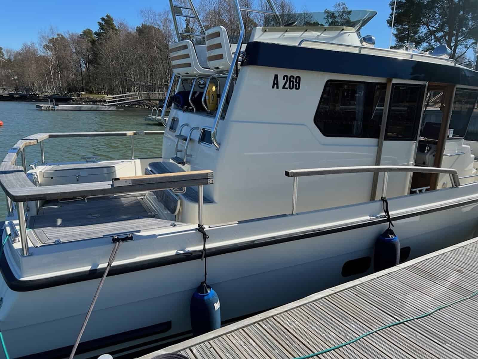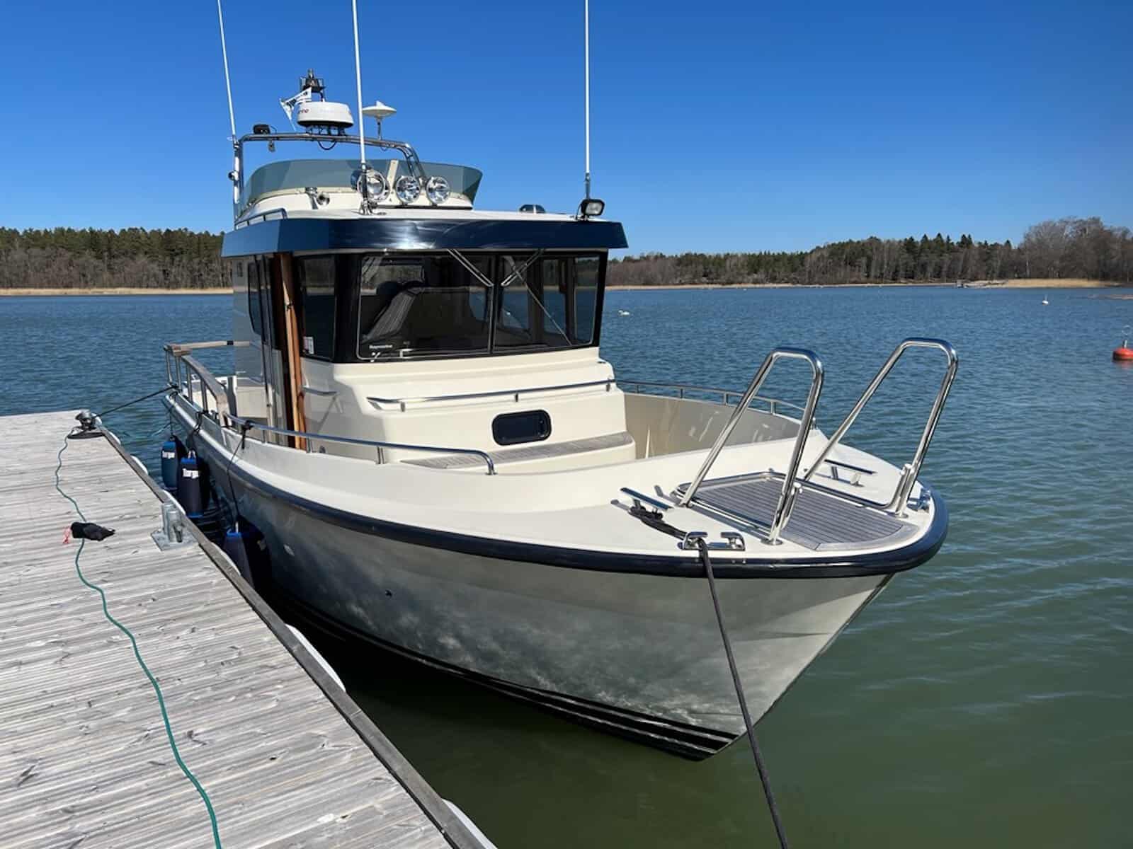 Targa 30.1 on kovaakin käyttöä kestävä erittäin merikelpoinen vene, joka soveltuu sekä yhteys- että matkaveneeksi. Malli tarjoaa hyvän kompromissin asuttavuutta ja näppärää kokoa. Tämä todella hienokuntoinen, toisen omistajan myymä yksilö on huolella ylläpidetty ja varusteltu. Talvisin venettä on aina säilytetty lämpimässä hallissa ja huolto- sekä varusteluhistoria on dokumentoitu. Kuten kaikki Targat, tämäkin malli on korkealaatuinen, käytännöllinen ja helppokulkuinen. Ajo-ominaisuuksiltaan vene on jämäkkä. Runko leikkaa hyvin aaltoa pohjan V-muodon ansiosta. Matkavauhdissa kulutus on kohtalainen 1,8L/mpk. Keulapotkuri helpottaa manöövereitä. Majoittumaan mahtuu mukavasti viisi henkeä. Pentteri on käytännöllinen ja perän WC/suihku kiitettävän kokoinen. Kauniilla säällä oleskelutilaa voi laajentaa kannelle ja ruokailla avotilan pöydän ääressä. Vene on heti valmiina uuden kauden merireissuihin.